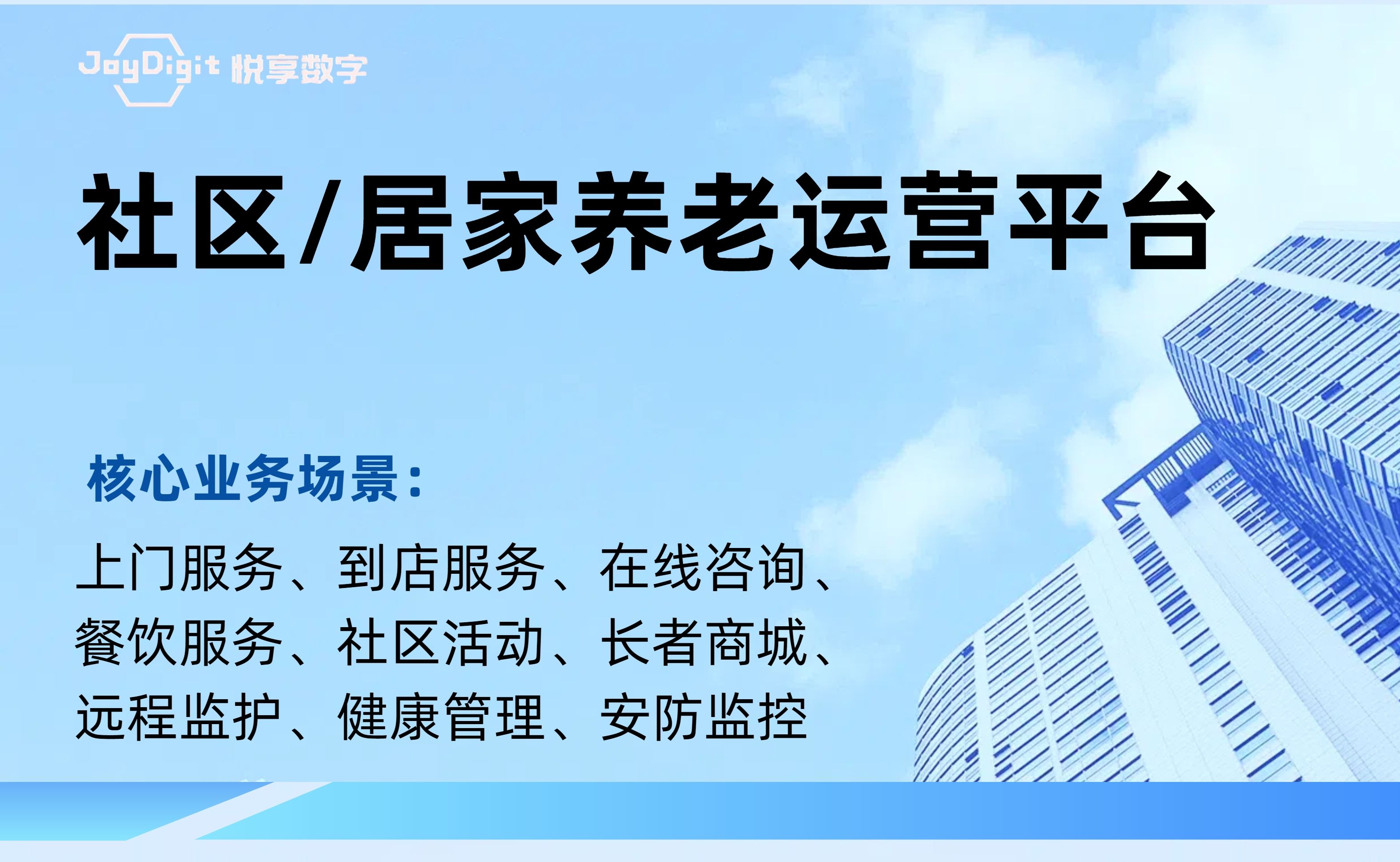 北京悅享數(shù)字科技有限公司(JoyDigit?,簡稱悅享數(shù)字?)作為養(yǎng)老行業(yè)數(shù)字化轉(zhuǎn)型的引領(lǐng)者,以“數(shù)字驅(qū)動健康?,智慧賦能養(yǎng)老?”為愿景,以iSpeed作為養(yǎng)老行業(yè)數(shù)字化轉(zhuǎn)型的標準,通過融合大數(shù)據(jù)、人工智能、物聯(lián)網(wǎng)、區(qū)塊鏈和移動互聯(lián)等創(chuàng)新技術(shù),打造了領(lǐng)先的數(shù)字化養(yǎng)老解決方案-悅享養(yǎng)老數(shù)字化平臺(JoyDigit NexSight Platform),端到端覆蓋了數(shù)字化渠道與銷售、業(yè)務流程標準化與智...